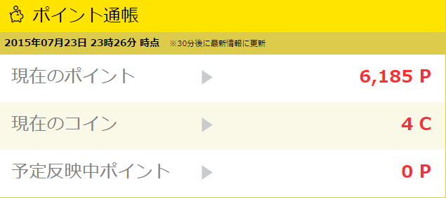 アンケート・・・何かいろいろなアンケート。モニター参加の募集も行っている。気楽できるので良い。大体毎日2~4件ほどアンケートが発生する。スマホからはできない模様。