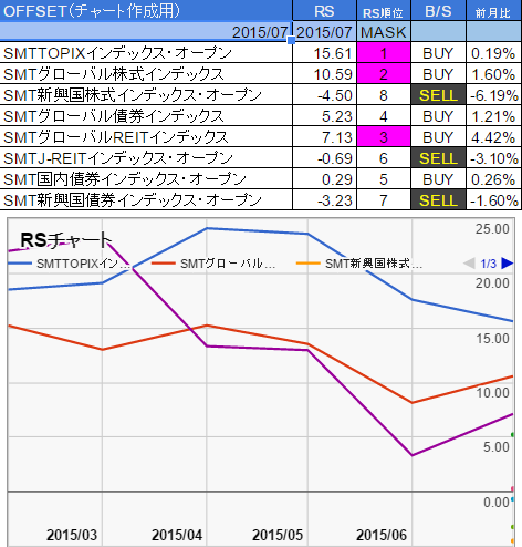 雑記 > 投資信託 > 12ヶ月移動平均+RSの2015年7月末シグナル(2日先行)